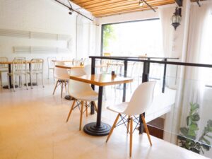 - スペースC:少人数でのワークショップに最適な、アットホームな雰囲気のカフェです。