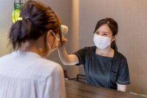- 検温の実施: 非接触型の体温計を用いて、参加者の検温を行います。発熱が認められた場合は、参加を控えてもらうようにしましょう。検温時に、体温計と顔の距離が適切に保たれているか確認しましょう。